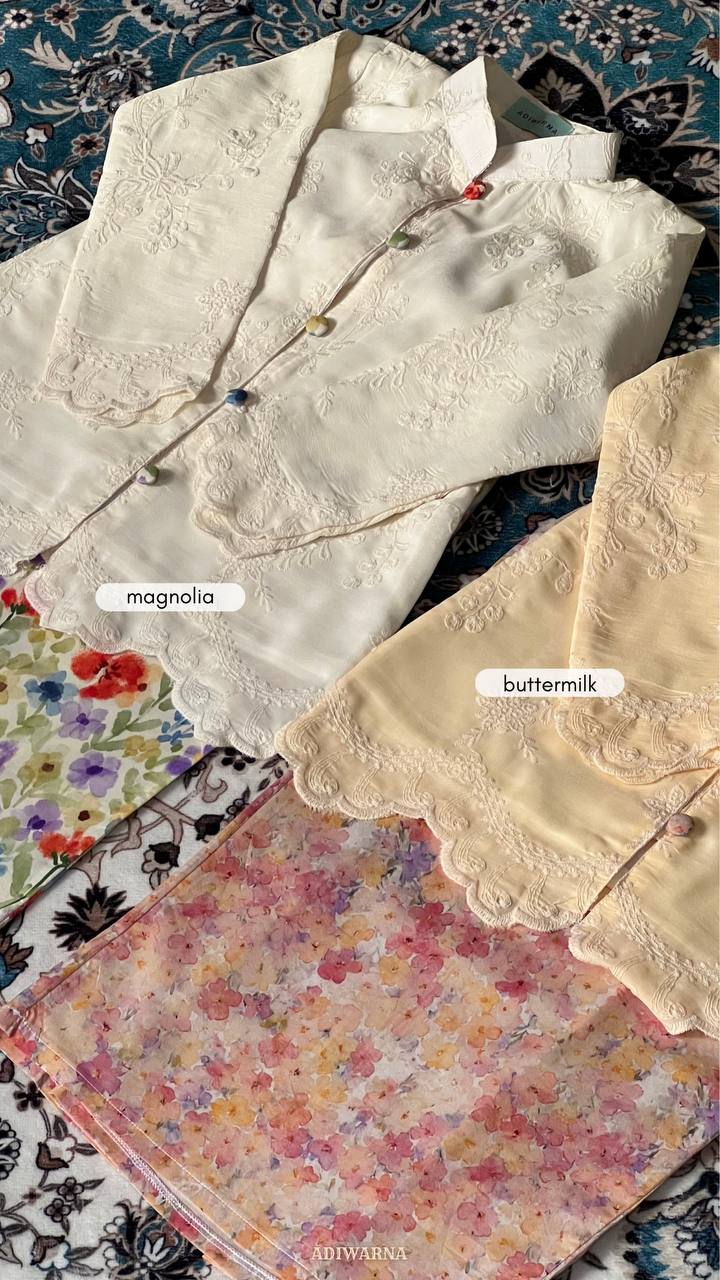 Kurung made from cotton with floral embroidery, pairing with floral bottom